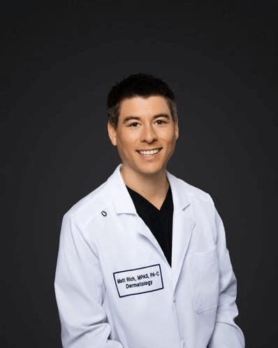Matt Rich, PA-C is a highly skilled and compassionate dermatology provider with eight years of experience in general dermatologic care. After earning his bachelor’s degree from the University of California, Santa Barbara, he went on to complete his Master of Physician Assistant Studies at Rocky Vista University in Colorado.